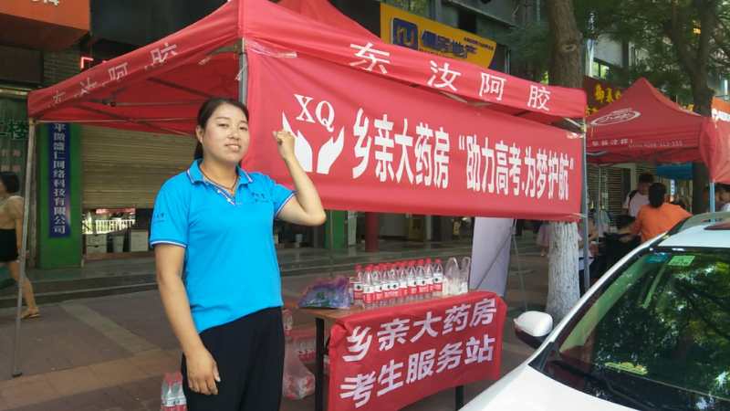 陕西乡亲大药房区域经理纽思妍接受渭南广播电视台记者采访时说道:“今年高考这两天气温比较高,鉴于考生戴口罩进考场,我们在各个服务点增加了一台制氧机,如遇突发事件比如脑供血不足,中暑可以有很好的防治作用,也可以缓解考生紧张、焦虑情绪”。