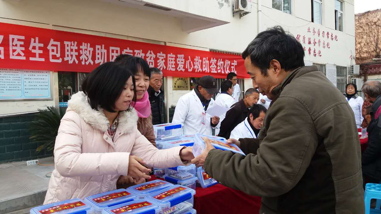 11月10日,渭南乡亲大药房连锁有限公司的志愿者来到阳郭镇,为45户建档立卡的贫困家庭发放“爱心小药箱”。活动中,工作人员还赠送给村民装有家庭常用药的“爱心小药箱”,受到村民欢迎。并详细给贫困群众介绍箱中的药品,介绍注意事项,并叮嘱他们一定要照顾好身体。