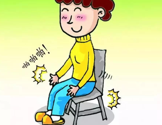 ③ 拍膝四周坐于椅面,双脚平放地面,膝关节自然屈曲,两手半握拳,以适当力度在膝盖四周轻轻拍打50次左右。④ 按揉髌骨保持上述坐姿,将双手掌心放在髌骨上,五指微张开紧贴在髌骨四周,均匀和缓按揉髌骨20~40次。